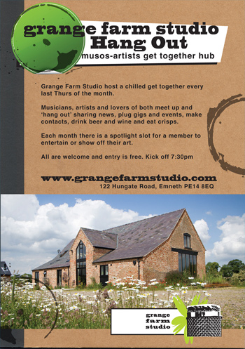 The FREE music Hangout is hosted on the last Thursday of every month from 7.30pm and is a fantastic opportunity for all music fans. It is a great networking opportunity for all the pockets of talented individuals and companies that exist in our area. Joining up these pools of talent is bringing more work and like minded people together to increase opportunities to play and enjoy music in our area. First and foremost this is a fun evening of music chat and info swapping. We also have a spotlight slot at the end of every Hangout for a member to perform or talk about their 'thing'. We're really keen for it to be open to anyone, regardless of age, style of music or experience so if you're interested, come along or drop us a mail, thehangout@grangefarmstudio.com To keep up to date, join our facebook group!